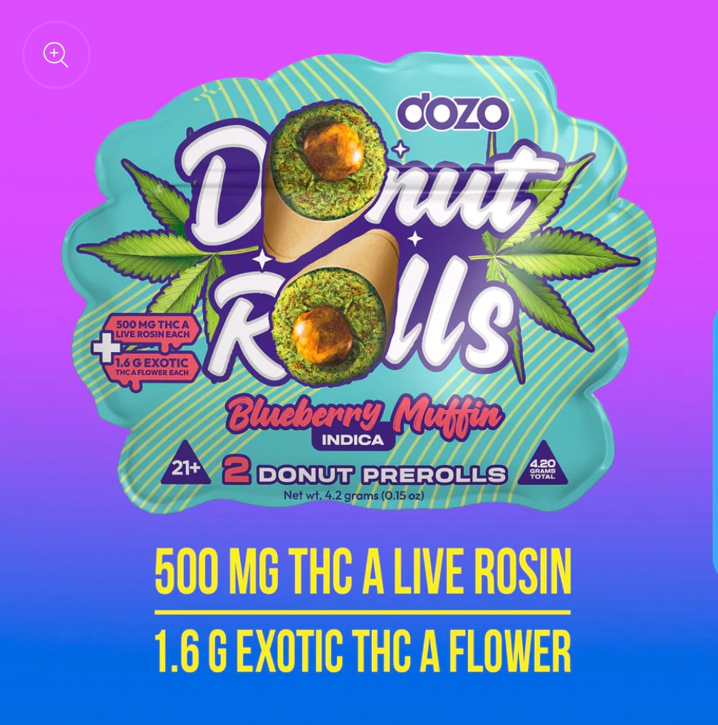 This two pack of DOZO infused pre rolls contain 1.6 grams of premium THCa flower and 500 mg of premium live rosin in each pre rolled blunt.